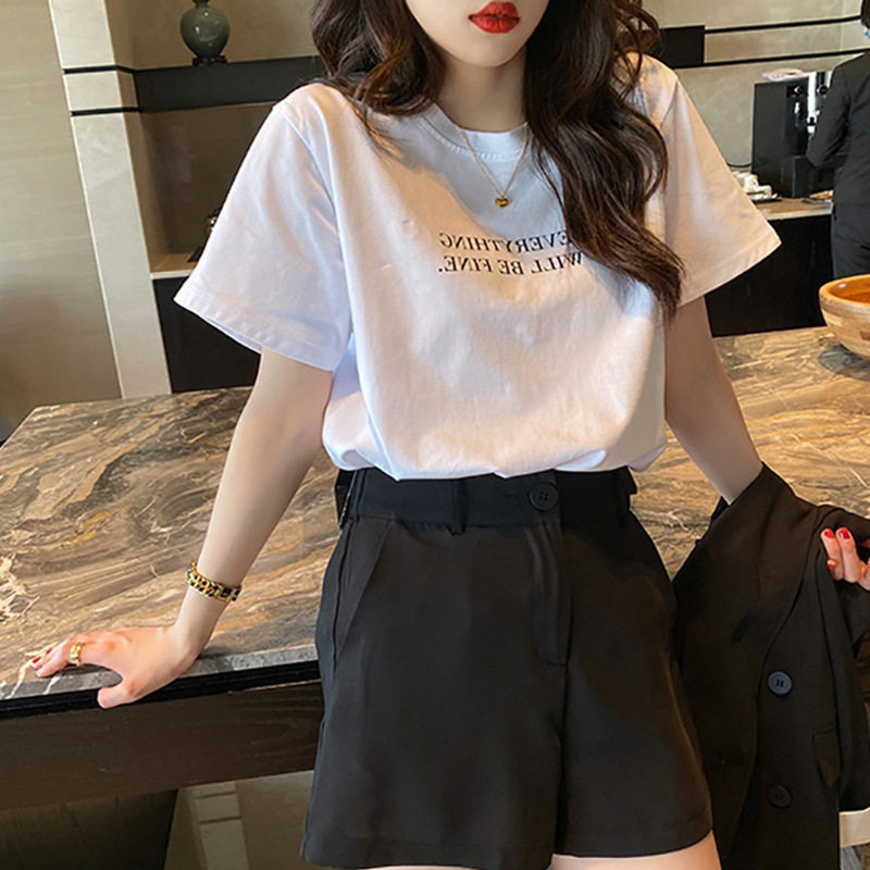 短袖ins潮牌纯棉短袖t恤女宽松2021减龄打底衫网红款宽松时尚热门设计联盟服务商